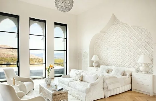 Marokkanisches haus elegante sessel und couch in strahlend weiß