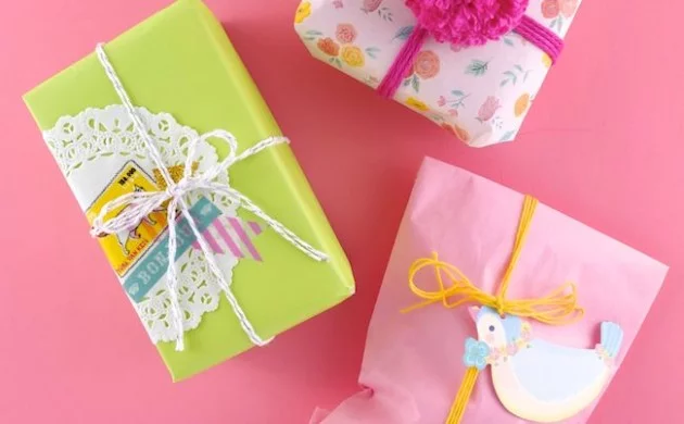 Babyparty geschenke dekorieren verpackungspapier lustig bunt