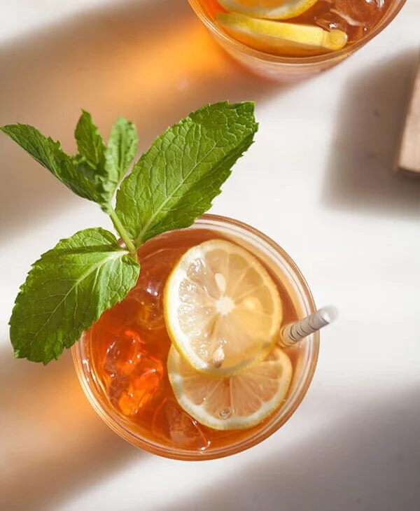 Anzeige Eistee gesundes Sommergetränk mit Zitronenscheiben und Minze garniert Frischekick Zurück Weiter Zurück zum Beitrag Anzeige