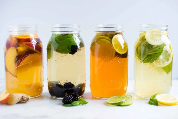 Anzeige Eistee gesundes Sommergetränk vier Gläser verschiedene Zubereitung und Dekoration Zurück Weiter Zurück zum Beitrag Anzeige