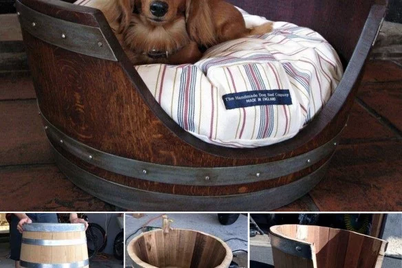 Weinfass diy möbel haustiere hundezubehör hundebett selber bauen holzfass