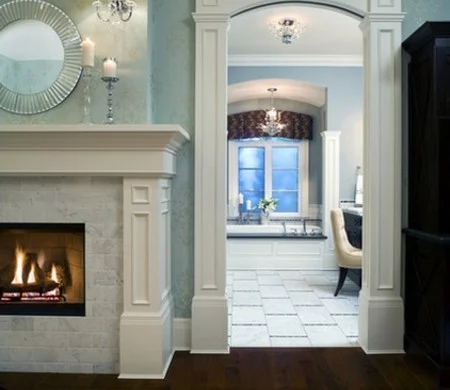 Der Übergang zwischen dem Fliesenfußboden im Badezimmer und Hartholz in den anderen Räumen wird öfter im Voraus...Bodenfliesen und Hartholz als Bodenbelag
