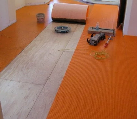 Der Übergang zwischen dem Fliesenfußboden im Badezimmer und Hartholz in den anderen Räumen wird öfter im Voraus...Bodenfliesen und Hartholz als Bodenbelag