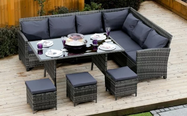 Garten gestalten bilder moderne gartenmobel rattan schone kissen holzboden