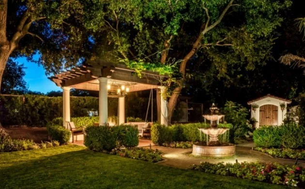 Garten gestalten bilder moderner garten beleuchtung pergola brunnen