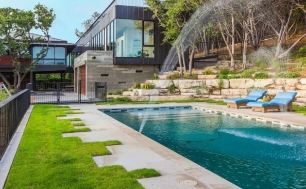 Garten gestalten bilder schwimmbad rasen gartenliegen