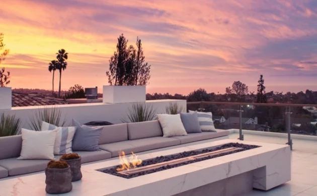 Gartengestaltung ideen feuerstelle modern dekokissen terrasse gestalten ideen