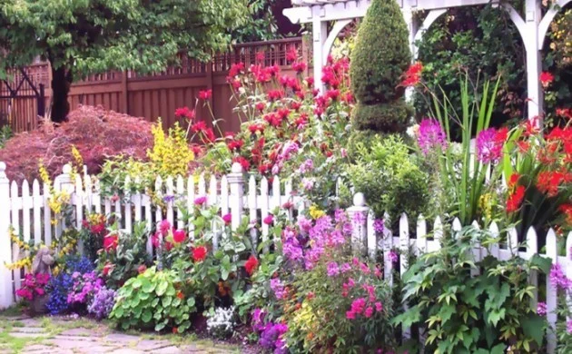 Gartengestaltung ideen blumen weiser zaun hinterhof