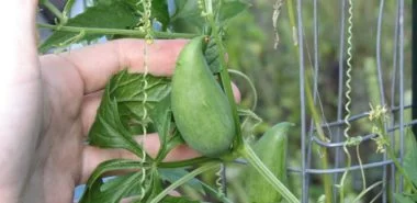 Gemüse auf Rankgittern ist auch in der Regel einfacher zu ernten. Anstatt durch einen weitläufigen Dschungel von Kürbispflanzen zu suchen, können Sie sie leicht an einem Spalier hängen sehen. Außerdem fällt auch das lästige Bücken aus. Die Früchte sind auch in der Regel sauberer und gleichmäßiger.