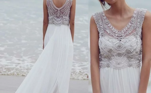 Strandhochzeit brautkleid boho stil paillette stickarbeit