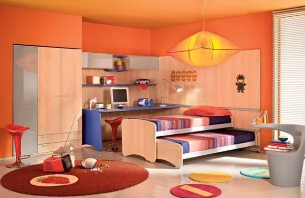 Ausziehbare betten im kinderzimmer kompakt modern orange