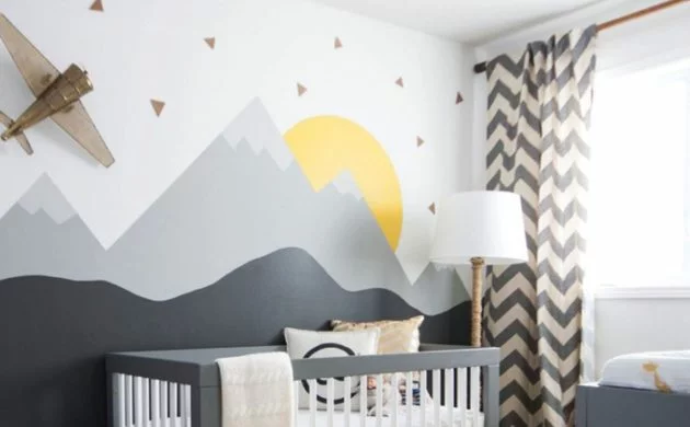 Babyzimmer ideen modernes design zig zag muster gardinen