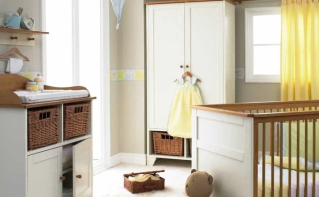 Babyzimmer ideen super modern holzboden gelbe akzente