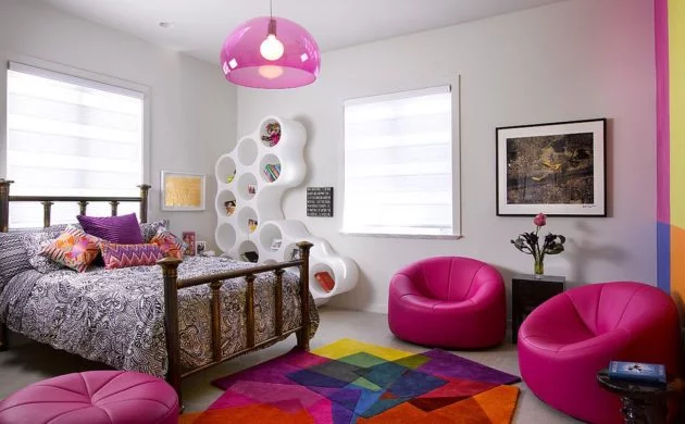 Farbgestaltung kinderzimmer farbenfroh geometrischer teppich