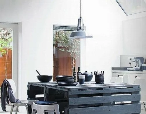 Möbel aus holz paletten tischplatte schwarz esszimmer küchen insel