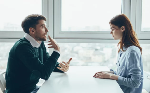 Hartnäckige Sternzeichen Streit zwischen zwei jungen Leuten der Widder energiegeladen dynamisch kämpferisch