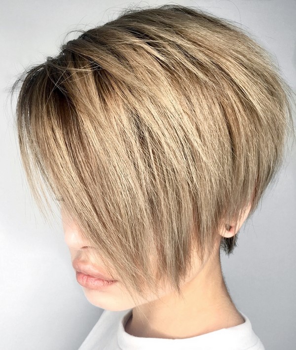 - Gestufter Pixie-Bob für dünnes Haar.