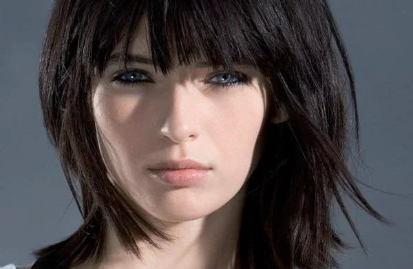 Mittellange Frisur mit Pony schwarze Nuancen Schattierungen