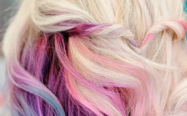 Blonde Haare färben Farbideen Haartrends rosa und lila Strähnchen