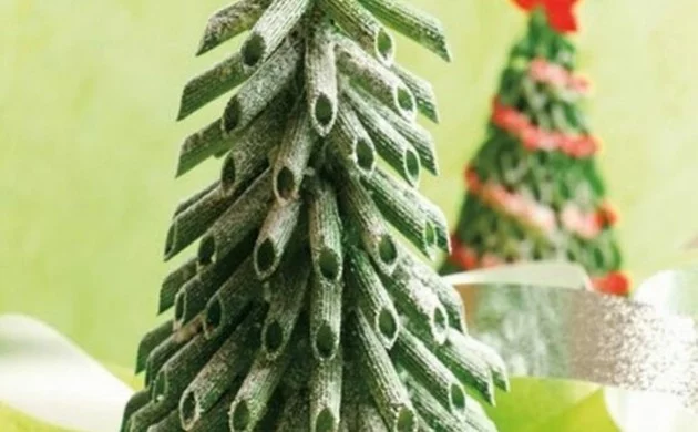 Weihnachtsbasteln Tannenbaum basteln Weihnachtsbaum aus grünen Nudeln
