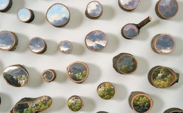 Alison Moritsugu schafft Baumstamm Deko. Sie bemalt Baumstämme und Holzblöcke mit lebendigen Landschaftsbildern. Dabei ist ihre Kunst mit keiner Baumfällung verbunden