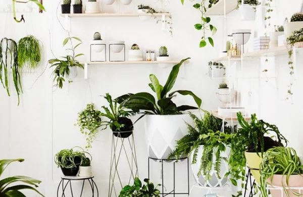 Natur ins Haus holen grüne Ecke viele Grünpflanzen gekonnt arrangiert