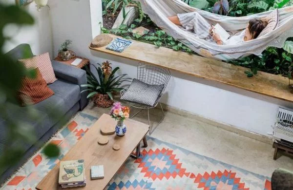 Natur ins Haus holen schöner Ausblick Hängematte am Fenster Auszeit