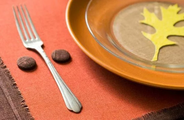 Herbst tischdeko blätter aus filz basteln teller besteck
