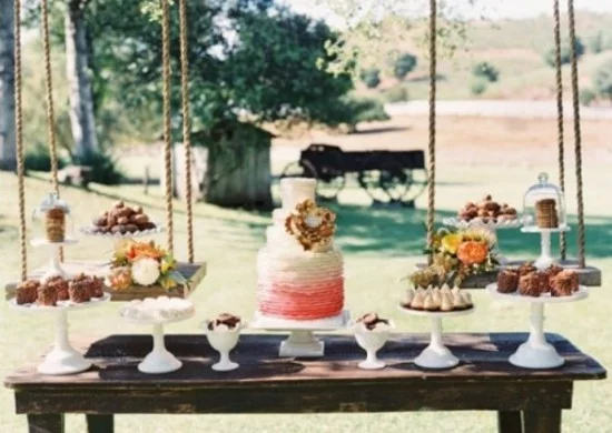 Hochzeitstische dekorieren holztisch nachspeisen hochzeitstorte