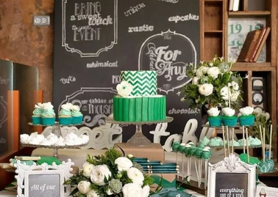 Hochzeitstische dekorieren nachtisch buffet hochzeitsdeko in grün