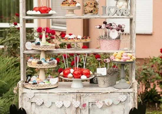 Hochzeitstische dekorieren schabby shic stil holz anrichte nachtisch buffet