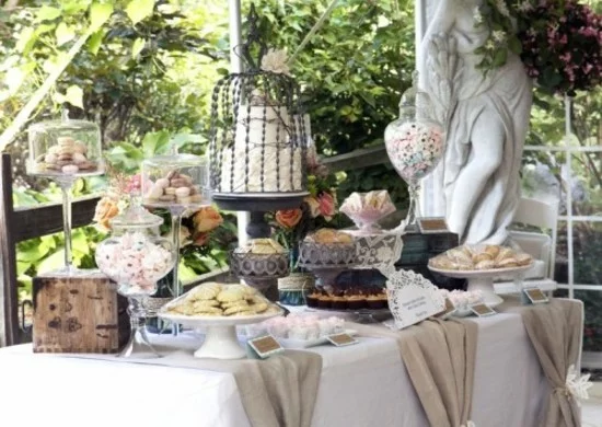 Hochzeitstisch dekorieren - Es geht hier darum, wie Sie den Tisch mit der Hochzeitstorte und den Desserts schick dekorieren könnten...