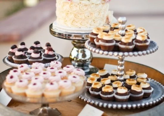 Törtchen hochzeitstorte nachtisch buffet hochzeitstisch dekorieren holzfass
