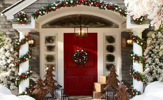 Weihnachtsdeko ideen eingang dekorieren weihnachtskranz festliche stimmung