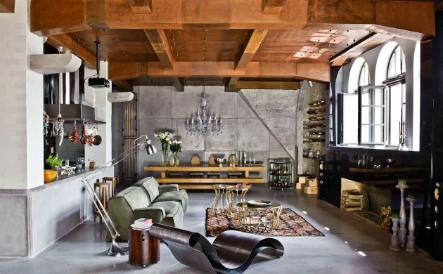 Inneneinrichtung ideen inneneinrichter wohnideen loft stil betonplatten holzdecke