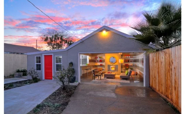 Details wie die nach Maß gefertigten Schränke, die Mosaikfliesen tragen dazu bei, dass sich die Garage zu Wohnraum umgebaut mehr wie ein Zimmer anfühlt.