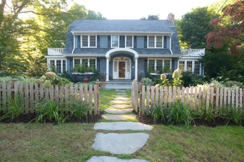 Gemütliches Zuhause gestalten holzzaun garten platten fußweg eingang