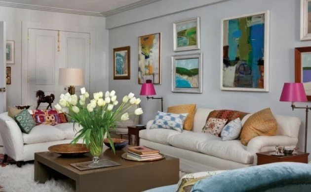 Innendesign eklektischer einrichtungsstil wohnzimmer tulpen weißer teppich