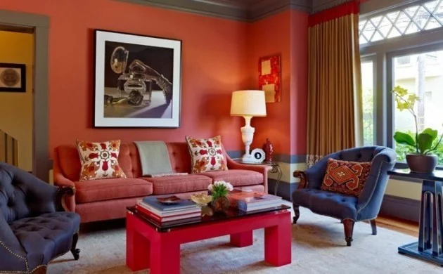 Wohnung einrichten ideen wohnzimmer krasse farben eklektisch