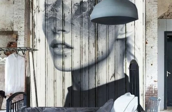 Raumtrenner vorhang regal glas ideen holz kunst graffiti