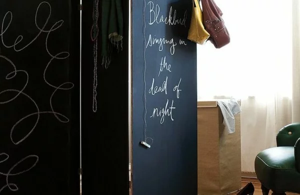 Raumtrenner vorhang regal glas ideen holz schwarz schreibtafel
