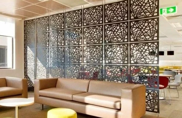 Raumtrenner vorhang regal offen paravent gelb hocker
