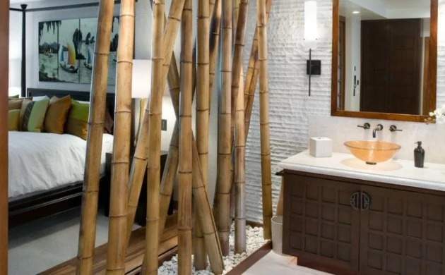 Raumtrenner ideen raumteiler vorhang raumteiler regal weisse deko wand bambus stöcke dick