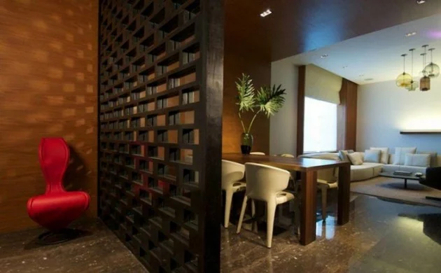 Raumtrenner ideen raumteiler vorhang raumteiler regal weisse deko wand dunkles holz