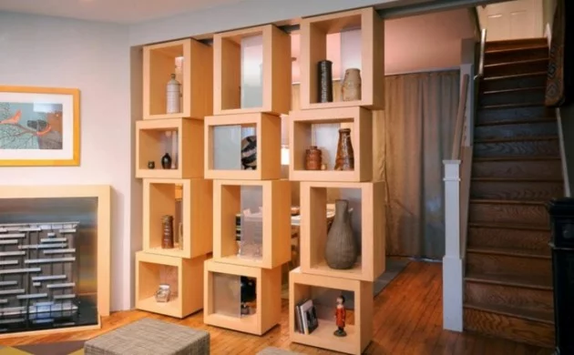 Raumtrenner ideen raumteiler vorhang raumteiler regal weisse deko wand helles nussholz