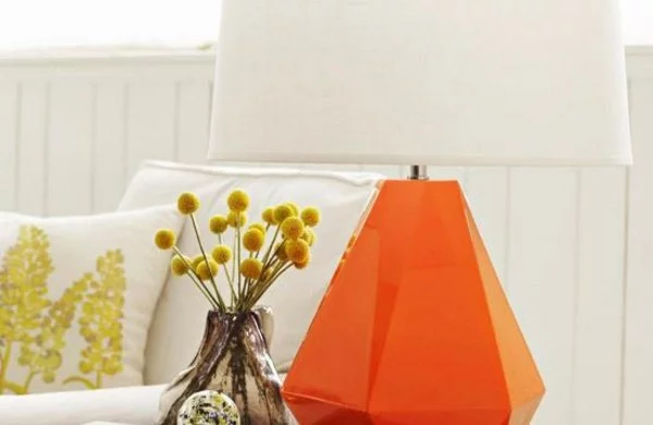 Haus dekoration idee design tischlampe orange akzente weisse interieurs
